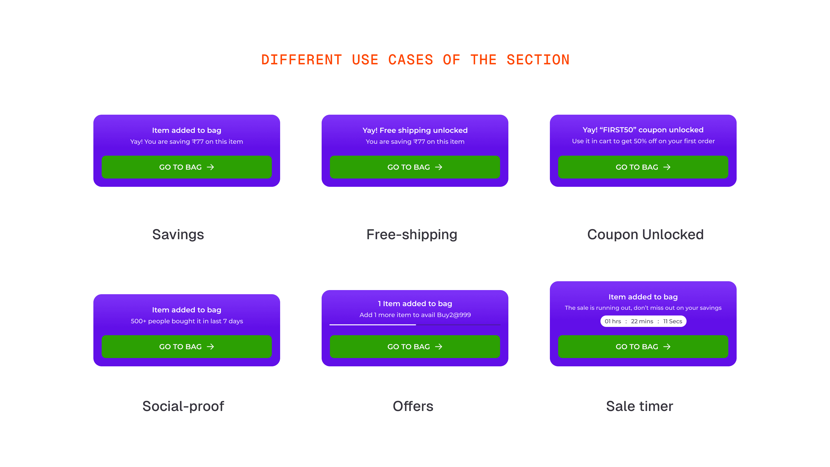 Use Cases : The interaction needed to work across different scenarios. A user saving money on a product. A user unlocking free shipping. A user getting a coupon code. Each of these is a different message but the same interaction wrapper.